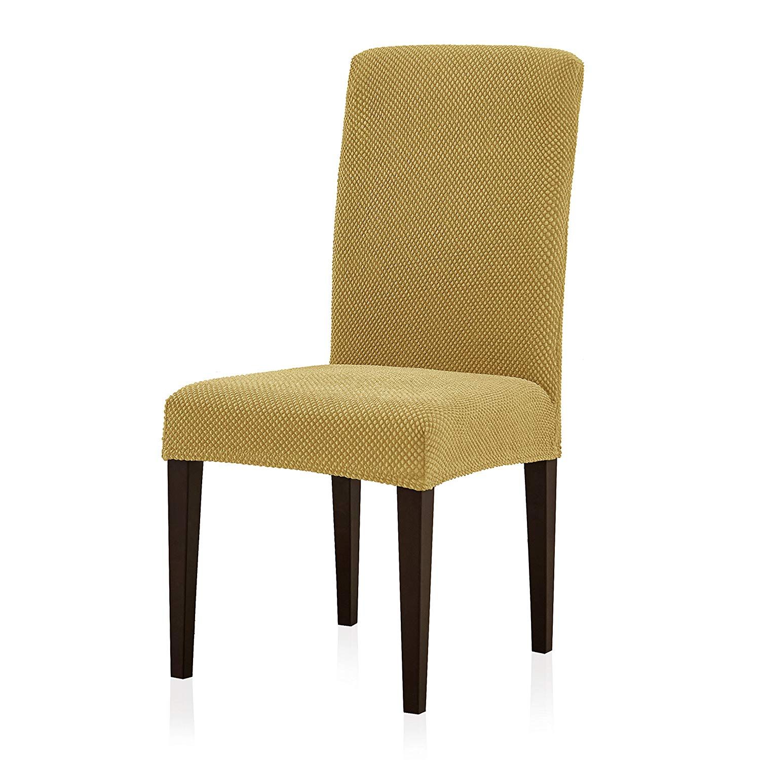 Mecerock velvet stretch dining room chair covers soft removable dining chair slipcovers set of 4 (light gray) 4.6 out of 5 stars 404. Made to fit most armless dining chairs, they secure with a tie at the back, creating a custom, stylish look. Quilted microfiber pet dog couch sofa furniture protector cover w/ tucks & strap. Legs uncovered for simply elegant style. Celevingne dining room chair covers set of 6, stretch soft spandex removable washable chair slipcovers for dining room,hotel,ceremony (linen pattern green, 6 pack) $28.99 $ 28.